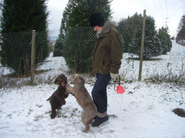 Lekker ravotten tijdens een wandeling in het bos vlak bij Dielsdorf waar de eigenaren van Baleno, Juno en Pan, de 3 reuen wonen. Tosca heeft er niet altijd zin in om door Vanni besprongen te worden, maar hier zijn ze weer even lekker bezig! Vanni is nu groter dan Tosca.