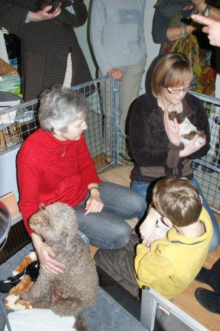 Tosca houdt het allemaal wat in de gaten en maakt van de gelegenheid gebruik om zich lekker te laten knuffelen door de moeder van het jongetje die met een teefje op zijn arm zit.