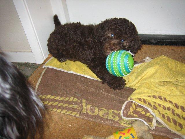 Dolce (Bibiana), 3 foto’s (ze waren allemaal zo leuk, dus het was moeilijk te kiezen!). Zij is helemaal naar Zeeuws Vlaanderen gegaan en het bevalt haar daar prima. Ook zij heeft de bekende puppy streekjes en de baasjes hebben er hun handen vol aan!