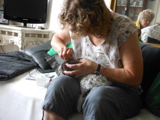 Ook bij Driesje wordt het nagel knippen voorgedaan.
