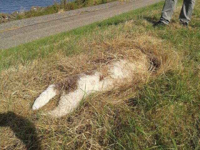 Heerlijk rollen in het hooi op de dijk. Donna kan er niet genoeg van krijgen. Ze kruipt er helemaal onder!